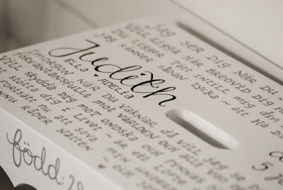 Ja, mycket dop och bröllop är det just nu som sagt. En beställning på en doppall fick jag till en liten tjej som heter Judith. Innan hon föddes fick hon den här spjälsängen av sina föräldrar som jag målat. Hoppas att lilla J tycker om den och att det blir ett fint dop med fint väder.