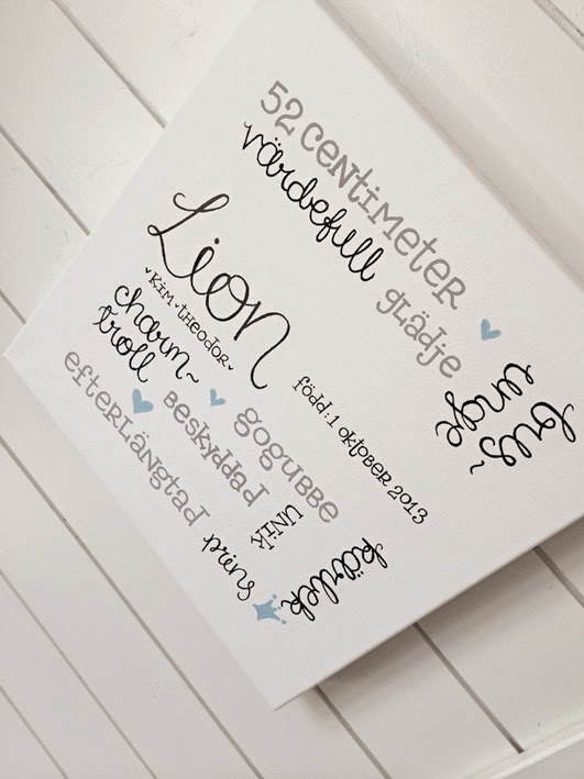 Huller-om-buller-tavlorna görs på beställning till ljusarumidalarna@gmail.com. Pris 450:- exkl frakt. Vid beställning behöver jag 12-15 ord, samt barnets uppgifter och leveransadress. Jag kan även göra tavlor där jag själv lägger till ord som passar för alla barn (såsom lycka, efterlängtad, älskad etc).